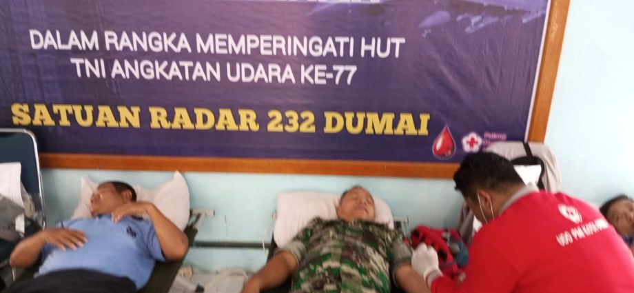 DUMAI — (SNI) — Sejumlah anggota Koramil 02 Bukit Kapur, yakni Serma Zul Efendi, Serka Evihotman, dan Serda Jumat Desmanto, melaksanakan donor darah dalam rangka memperingati HUT ke-77 Satuan Radar 232 Dumai. Kegiatan tersebut berlangsung dengan aman dan lancar pada Jumat (17/3/2022).
