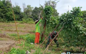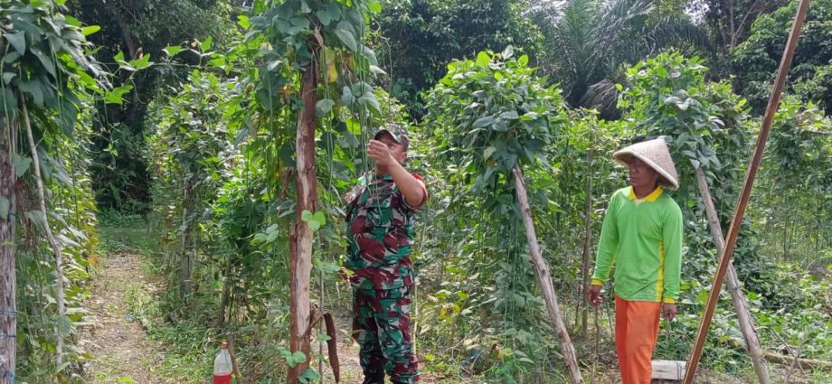DUMAI — (SNI) — Sertu Sareh selaku Babinsa Kelurahan Bagan Besar melaksanakan pendampingan kepada petani tanaman kangkung dan kacang panjang, di Jalan Agenda RT 05 (2/1).