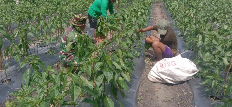 Sertu Sutiono mendatangi langsung para petani, untuk memberikan pengarahan secara langsung mengenai tata cara penanaman Cabe.