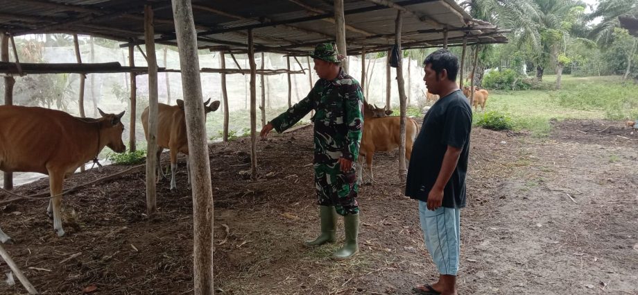 DUMAI — (Suaranegeri.id) — Kodim 0320/Dumai Babinsa Kelurahan Bintan Kecamatan Dumai Kota Sertu Sutiono, Melaksanakan Pemantauan dan Pendampingan Peternak Sapi serta Sosialisasi Penyakit Mulut dan Kuku (PMK) di Wilayah Binaannya, (5/11).