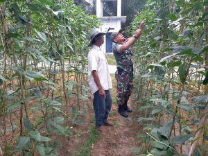 Selama kegiatan berlangsung, Serda Jumat Desmanto memberikan bimbingan kepada Ponimin dalam cara menanam dan merawat tanaman Kacang Panjang agar bisa tumbuh dengan baik dan menghasilkan panen yang melimpah.