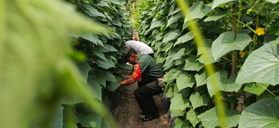 DUMAI — (SNI) — Pada Rabu, 21 Juni 2023, Babinsa Kelurahan Bukit Kapur Koramil 02/BK, Serda M. Andi Darmawan, melaksanakan kegiatan karya nyata pendampingan dalam upaya meningkatkan ketahanan pangan melalui tanaman timun. Kegiatan ini dilaksanakan di lahan milik Eko yang terletak di Jalan Akasia, RT 08, Kelurahan Bukit Kapur.