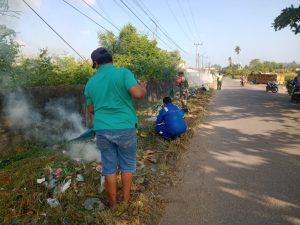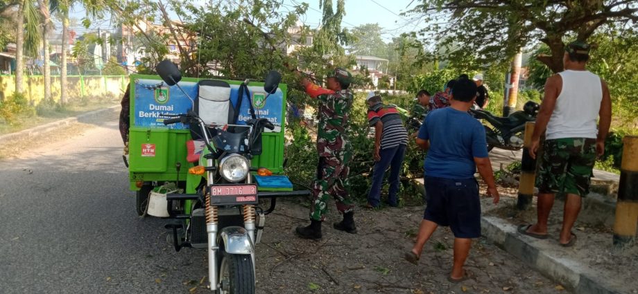 DUMAI — (SNI) — Melalui Babinsa Kelurahan Bumi Ayu – Kecamatan Dumai Selatan Serma Sukardi, Koramil 01 melaksanakan kegiatan gotong royong. Kegiatan ini dilaksanakan dengan tujuan untuk membersihkan lingkungan dan sisi jalan utama di RT 06, (18/3).