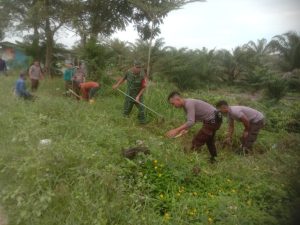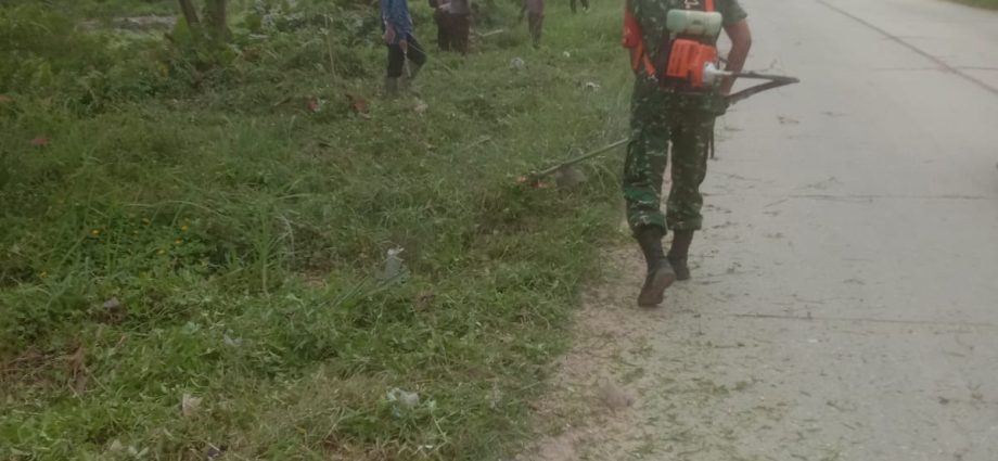 DUMAI — (SNI) — Sertu Ramli selaku Babinsa Kelurahan Mundam menggelar Gotong Royong di bahu kiri kanan Jalan Arifin Ahmad mulai dari RT 01 sampai RT 05, (10/2).