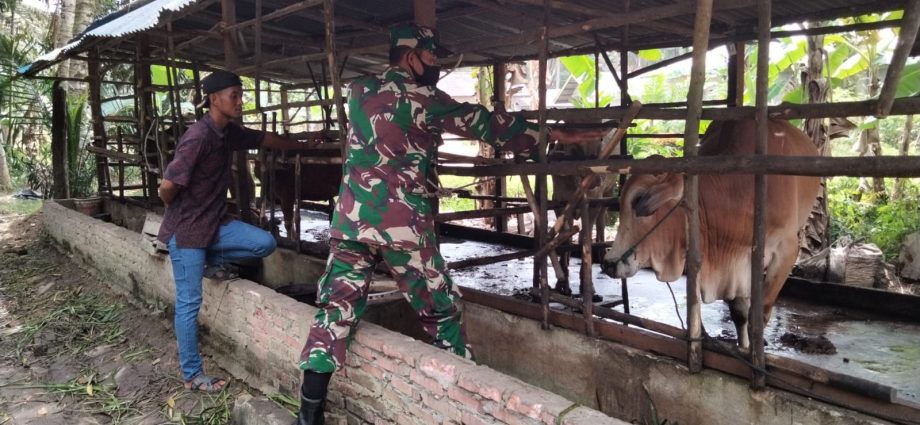 DUMAI — (SNI) — Babinsa Kelurahan STDI yang bertugas di Kecamatan Dumai Barat, Sertu Sugianto, melaksanakan sosialisasi pencegahan Penyakit Mulut dan Kuku (PMK) di Jalan Harapan, RT 12, yang merupakan lokasi peternakan milik Purwadi, (18/6).