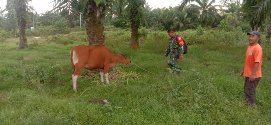 DUMAI — (SNI) — Koramil 02/BK – Babinsa Koramil PWK 04/MK Kodim 0320/Dumai, Kelurahan Teluk Makmur, Serda Cerza Katno Melaksanakan Sosialisasi Pencegahan Penyakit Mulut dan Kuku (PMK), (16/1).