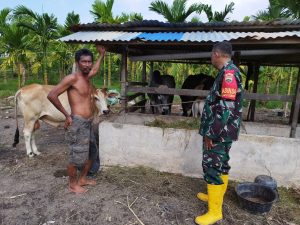 Dalam kegiatan sosialisasi tersebut, Serda Miftah memberikan penjelasan tentang karakteristik penyakit PMK, gejala-gejalanya, serta cara pencegahannya. Ia mengingatkan peternak tentang pentingnya menjaga kebersihan kandang, memberikan pakan yang sehat, dan melakukan vaksinasi secara rutin kepada sapi mereka.
