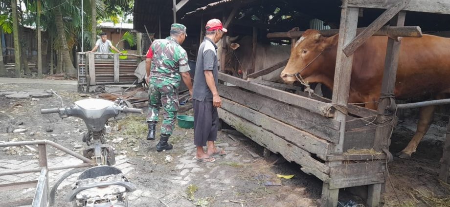 DUMAI — (SNI) — Kodim 0320/Dumai Babinsa Kelurahan Sukajadi Kecamatan Dumai Kota Serda Ahmad Junaidi, Melaksanakan Pemantauan dan Pendampingan Peternak Sapi serta Sosialisasi Penyakit Mulut dan Kuku (PMK), (22/1).