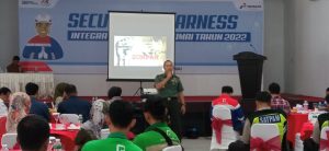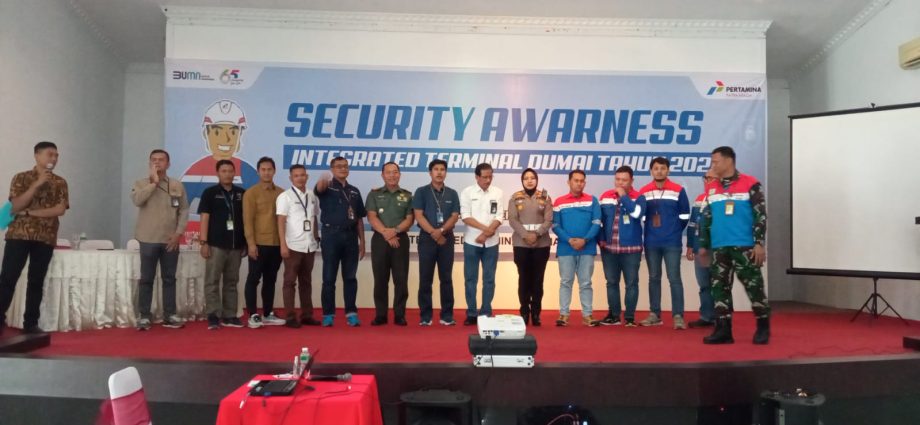 DUMAI —(Suaranegeri.id) — Dandim 0320/Dumai Letkol Arh Hermansyah Tarigan SE. yang di wakili Oleh Pjs.Pasiter Dim 0320/Dumai Kapten Arh M.Daulay berikan materi Wawasan Kebangsaan dalam Rangka acara kegiatan Security Awarness integrated Terminal Dumai Tahun 2022 bertempat di Aula Restoran Arthabella Jln.Bukit Datuk Kel.Bukit Datuk Kec.Dumai Selatan pada hari Kamis 8 Desember 2022.