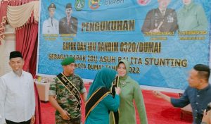 DUMAI — (Suaranegeri.id) — Komandan Kodim 0320/Dumai Letkol Arh Hermansyah Tarigan SE. bersama Ketua Persit kck Cab LXXV Kodim 0320/Dumai Ny.dr.Putri Hermansyah Tarigan SE dikukuhkan sebagai Bapak dan Bunda Asuh Anak Stunting di Wilayah Kota Dumai bertempat di Rumah Kediaman Walikota Jln.Putri Tujuh Kel.Teluk Binjai Kec.Dumai Timur pada hari Jum’at 30 Desember 2022.