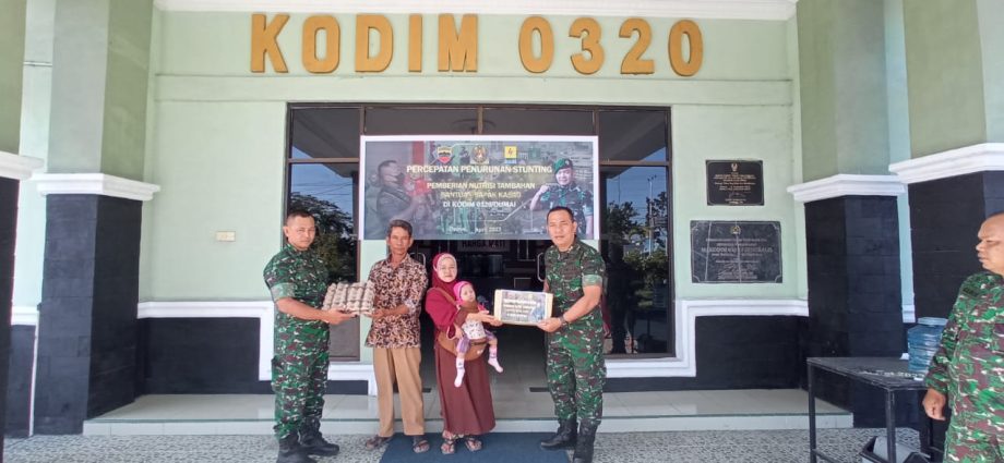 DUMAI — (SNI) — Pasiter Kapten Arh M.I Daulay mewakili Dandim 0320/Dumai, Letkol Arh Hermansyah Tarigan, menyerahkan bantuan untuk mencegah penyakit stunting pada anak-anak di wilayah Kota Dumai, (10/3).