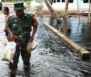 DUMAI — (Suaranegeri.id) — Program Babinsa masuk dapur benar – benar dapat dirasakan manfaatnya oleh masyarakat Kota Dumai khususnya wilayah yang terpencil yang mengalami kendala akses jalan terhambat di akibatkan curah hujan yang tinggi sehingga mengakibatkan luapan sungai mengbanjiri akses jalan(banjir) di kel.Tanjung penyebal Kec.Sungai sembilan.