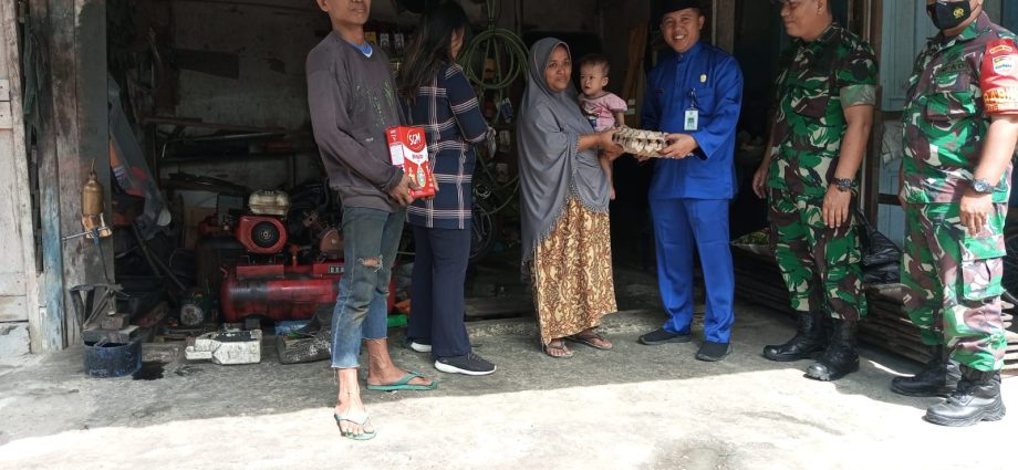 DUMAI — (Suaranegeri.id) — Danramil 02/BK Kelurahan Bukit Kapur kapten Arh M.I Daulay bersama Babinsa dan Lurah Bagan Besar Teguh Widodo menyerahkan Bantuan Untuk anak yang menderita Stunting, (26/11).