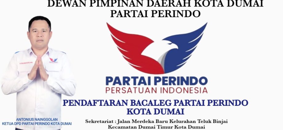DPD Partai Perindo Kota Dumai Bergerak cepat membuka pendaftaran Bacaleg(Bakal Calon Legislatif) DPRD Kota Dumai. Bagi masyarakat Kota Dumai yang mau mendaftarkan dirinya sebagai Bacaleg Partai Perindo dapat mengambil formulir di Sekretariat DPD Partai Perindo Kota Dumai di jalan Merdeka Baru Kelurahan Teluk Binjai Kecamatan Dumai Timur Kota Dumai,Jumat(09/02/23)
