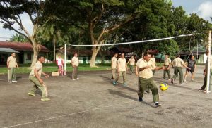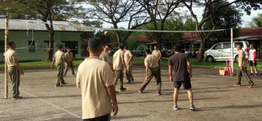 DUMAI — (Suaranegeri.id) — Prajurit Kodim 0320/Dumai melaksanakan olahraga Bola Voli dalam rangka memelihara kesehatan dan menjaga Stamina tubuh di lapangan Voli Makodim 0320/Dumai Jln.Sultan Syarif Kasim Kel.Teluk Binjai Kec.Dumai Timur Kota Dumai Pada hari Jum’at 16 Desember 2022.