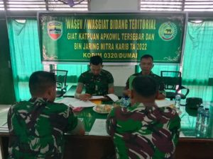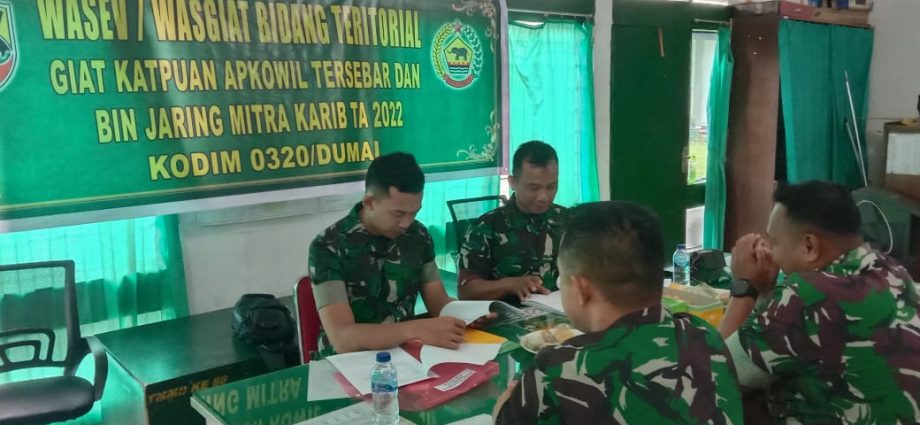 DUMAI — (Suaranegeri.id) — Kodim 0320/Dumai Terima Tim Wasev dari Korem 031/WB bidang Teritorial bertempat di Makodim 0320/Dumai Jln.Sultan Syarif Kasim Kel.Teluk Binjai Kec.Dumai Timur Kota Dumai, (11/11).