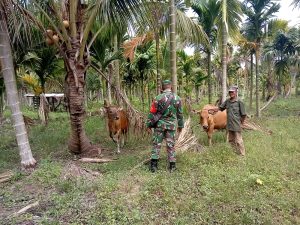 Selain melakukan pengecekan terhadap hewan ternak milik warga, Babinsa Serka Fahrizal Purba juga memberikan edukasi dan sosialisasi terkait PMK (Penyakit Mulut dan Kuku) kepada pemilik ternak sapi.