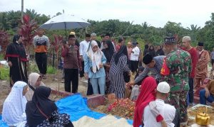 Dandim beserta seluruh anggota ikut aktif dalam proses mulai dari memandikan, sholat jenazah sampai ke pemakaman di TPU Kelurahan Bagan Besar.