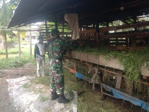 Selain melakukan pemantauan terhadap kesehatan hewan ternak, Serda Sahat Sinaga juga mensosialisasikan pentingnya menjaga kebersihan kandang.