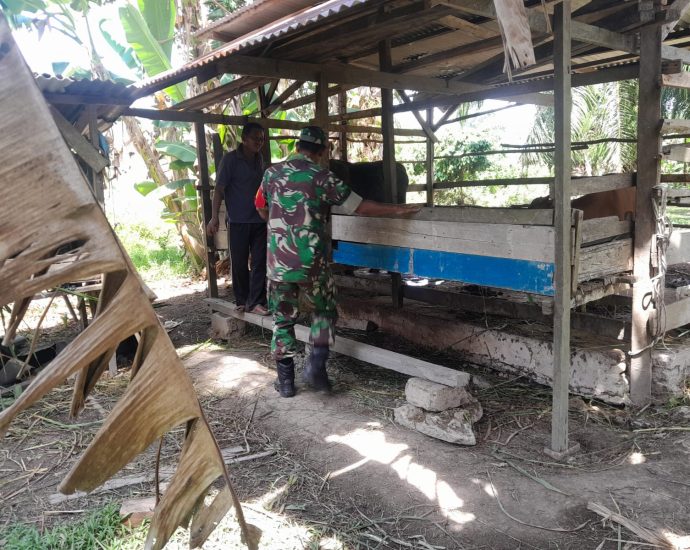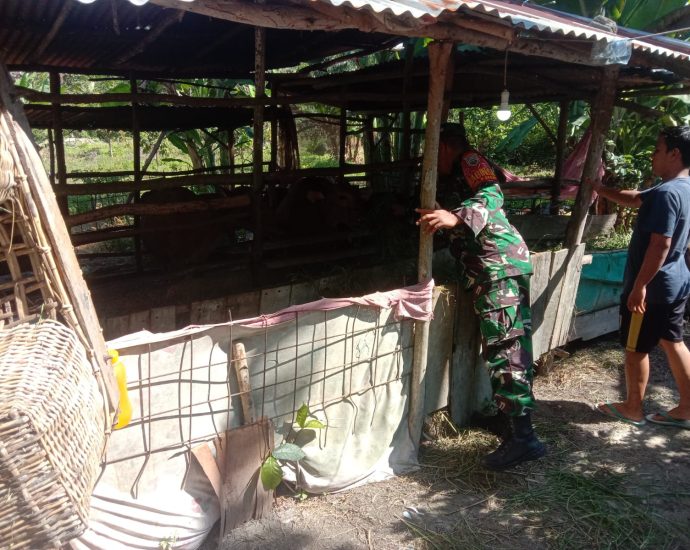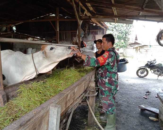 Babinsa Kelurahan Guntung laksanakan Pendampingan Dan Pendampingan Peternak Sapi Terkait Pencegahan PMK 2023-07-01 On: Juli 1, 2023