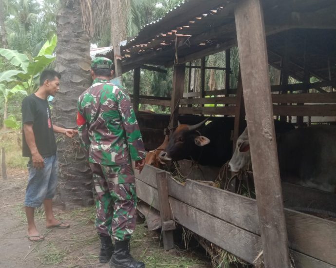 Sertu Afnal Laksanakan Pengecekan Kesehatan Hewan Kurban Di Wilayah Binaannya 2023-06-28 On: Juni 28, 2023