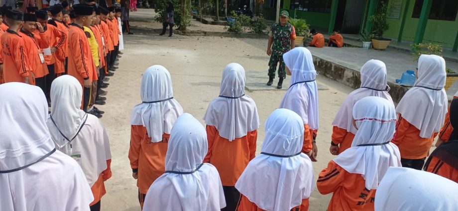 DUMAI — (SNI) — Babinsa Kelurahan Bukit Nenas, Serda Roni Sandra, melaksanakan pelatihan PBB kepada peserta didik baru MTS Yamas di halaman MTS Yamas, Jalan Sukarno-Hatta, Kelurahan Bukit Nenas, Kecamatan Bukit Kapur, pada Kamis, 22 Juni 2023.
