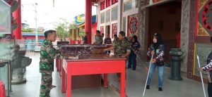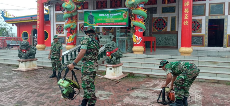 DUMAI — (SNI) — Personil Kodim 0320/Dumai melaksanakan kegiatan dalam rangka Bulan Bhakti HUT Korem ke-64 dengan sasaran tempat ibadah Klenteng Hock Liong Kiong di Jalan Kelakap Tujuh, Kelurahan Ratusima, Kecamatan Dumai Selatan, (17/3). Kegiatan tersebut dipimpin langsung oleh Danramil 0320/Dumai, Letkol Arh Hermansyah Tarigan.