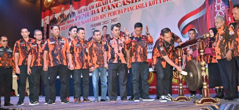 DUMAI — (SNI) — Majelis Pimpinan Cabang (MPC) Pemuda Pancasila (PP) Kota Dumai resmi buka Musyawarah Cabang (Muscab) Ke VII dan Pelantikan Fungsionaris MPC PP Kota Dumai Periode 2023-2027 di Ballroom Grand Royal Hotel Comfort Jalan Sudirman, Kota Dumai, pada Selasa (14/03/2023).