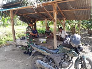 DUMAI — (Suaranegeri.id) — Koramil PWK 04/Medang Kampai melalui Babinsa Kelurahan Mundam Serda Cerzakatno, melaksanakan Patroli dan Sosialisasi Karhutla bersama masyarakat di H Husin RT 03 Kelurahan Guntung Kecamatan Medang Kampai,(24/11).