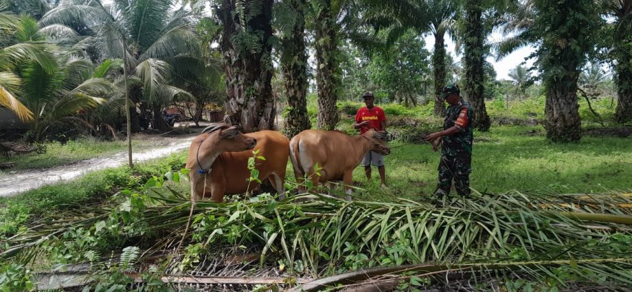 Dalam kegiatan ini, Sertu M. Aslim Lubis melakukan pendampingan dan pemantauan terhadap Syamsuri (49), salah satu pemilik peternakan sapi di daerah tersebut.