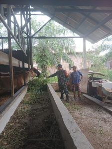 DUMAI — (SNI) — Babinsa Kelurahan Purnama Sertu Mahyudin melaksanakan pemantauan serta sosialisasi wabah PMK (Penyakit Mulut dan Kuku) pada hewan ternak milik warga binaan, (7/1).