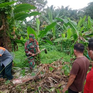 DUMAI —(Suaranegeri.id) — Sertu Sareh Babinsa Bagan Besar dari Koramil 02/BK Melaksanakan kegiatan gotong royong bersama pihak kecamatan Bukit Kapur, (1/12).