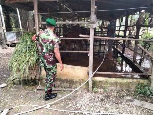DUMAI –(SNI) — Babinsa Koramil-01- Kodim 0320/Dumai, Kelurahan Simpang Tetap Dahrul Ihsan (STDI) – Kecamatan Dumai Barat Sertu Sugianto melaksanakan Pengecekan hewan ternak di Harapan RT 11. (10/1).