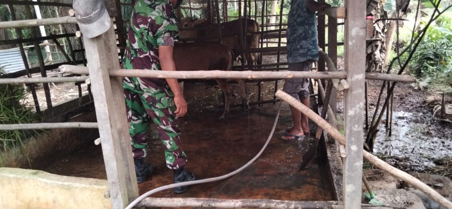 “Dalam rangka pencegahan penyebaran PMK, Maka kami turun ke tempat-tempat peternakan untuk melaksanakan sosialisasi pencegahan,” Kata Sertu Sugianto.