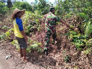 Sertu Sugianto mendatangi langsung beberapa lokasi titik hutan dan lahan di jalan Parit Sadak RT 06.