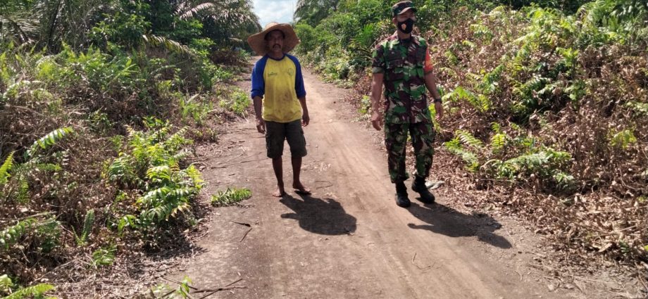 DUMAI — (SNI) — Kodim 0320/Dumai Melalui Babinsa Koramil-01 Kelurahan Simpang Tetap Dahrul Ihsan (STDI) Kecamatan Dumai Barat, Sertu Sugianto Melaksanakan Patroli Pencegahan Kebakaran Hutan dan Lahan Karhutla (21/1).