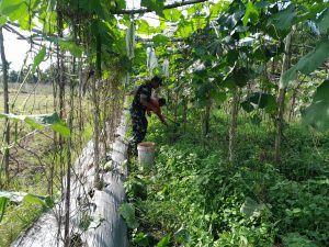 Sesampainya di kebun, Sertu Aslim Lubis langsung melaksanakan pemaparan tata cara penanaman dan juga turut turun langsung melakukan penanaman.