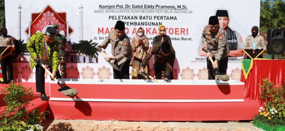 PEKANBARU (Suaranegeri.id) — Wakapolri Komjen Gatot Edy Pramono melakukan peletakan batu pertama pertanda dimulainya pembangunan masjid Al Kastoeri di jalan Sejahtera Keurahan Agrowisata Rumbai Barat Pekanbaru pada Selasa (27/06/2022).